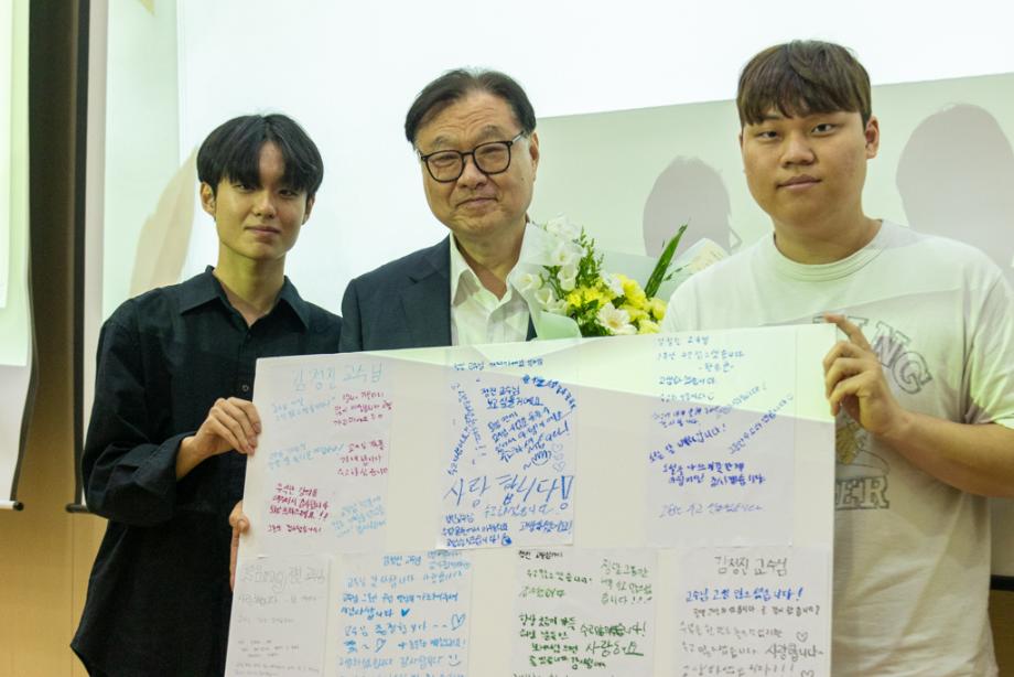 본문 시작 홈으로 MCC News 학과소개 교수소개 학과과정 MCC News MCC SNS 홈페이지가이드 학과 및 재학생 학과 및 재학생 교수 및 졸업생 미디어 정보통 학과 및 재학생 페이스북 트위터 프린트 🌷김정진, 김영근 교수님 퇴임식💐😭 미디어콘텐츠창작학과 2044 2025-06-25 5월 27일 화요일 학술관 제2 컨퍼런스 홀에서 김정진, 김영근 교수님의 퇴임식이 진행되었습니다. 김정진 교수님의 마지막 고별강의가 진행되었으며 학생들에게 소설가가 되려면 어떻게 해야하는지, 또 학생들을 위해 좋은 얘기들을 전달해주셨습니다! 김영근 교수님은 아쉽게도 개인사정이 있으셔서 퇴임식에 참석하지 못하셨습니다. 교수님들의 퇴임을 축하드리며 앞으로의 앞날을 항상 응원하도록 하겠습니다! 감사했습니다! 목록 이전🚗MT🚗 다음 ”미콘창 체육 잘 하네..?“ 💪💪 담당부서 : 미디어콘텐츠창작학과 담당자 : - 연락처 : 043-649-1741 최종수정일 : 2024-10-26 만족도조사 만족도 조사 이 페이지에서 제공하는 정보에 대하여 만족하시나요? 매우만족 만족 보통 불만족 매우불만족