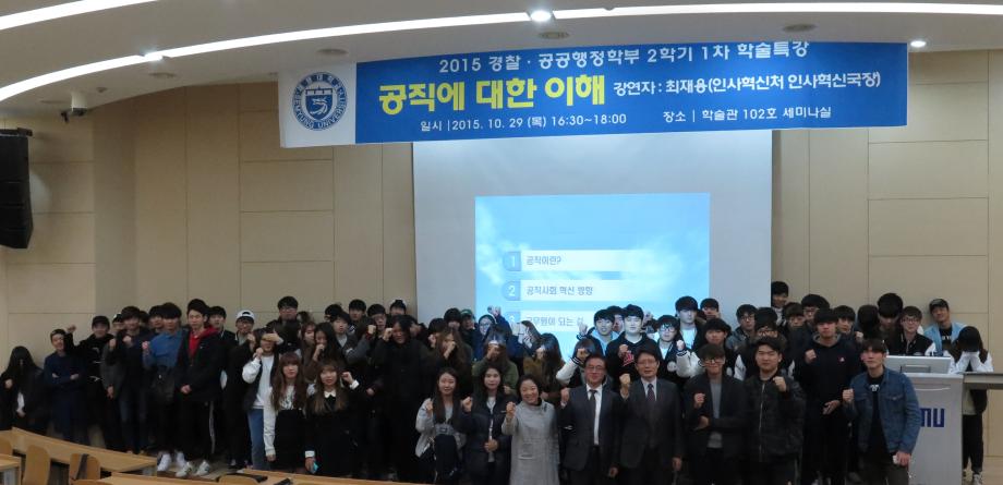 본문 시작 홈으로 커뮤니티 학부소개 교수소개 학부과정 커뮤니티 홈페이지가이드 포토갤러리 학부공지 채용정보 학부일정 포토갤러리 전공자료실 학생회 동아리 포토갤러리 페이스북 트위터 프린트 2015학년도 2학기 1차 학부학술특강 [공직에 대한 이해] 전체관리자 21361 2015-10-30 2015년 10월 29일 2015학년도 2학기 1차 학부학술특강을 "공직에 대한 이해"라는 주제로 인사혁신처 인사혁신국장 최재용님께서 강연하여주셨습니다. 목록 이전2015학년도 신입생 봉사활동 다음 2015학년도 2학기 안보전시관 교외교육 담당부서 : 경찰공공행정학부 담당자 : - 연락처 : 043-649-1457 최종수정일 : 2024-10-26 만족도조사 만족도 조사 이 페이지에서 제공하는 정보에 대하여 만족하시나요? 매우만족 만족 보통 불만족 매우불만족