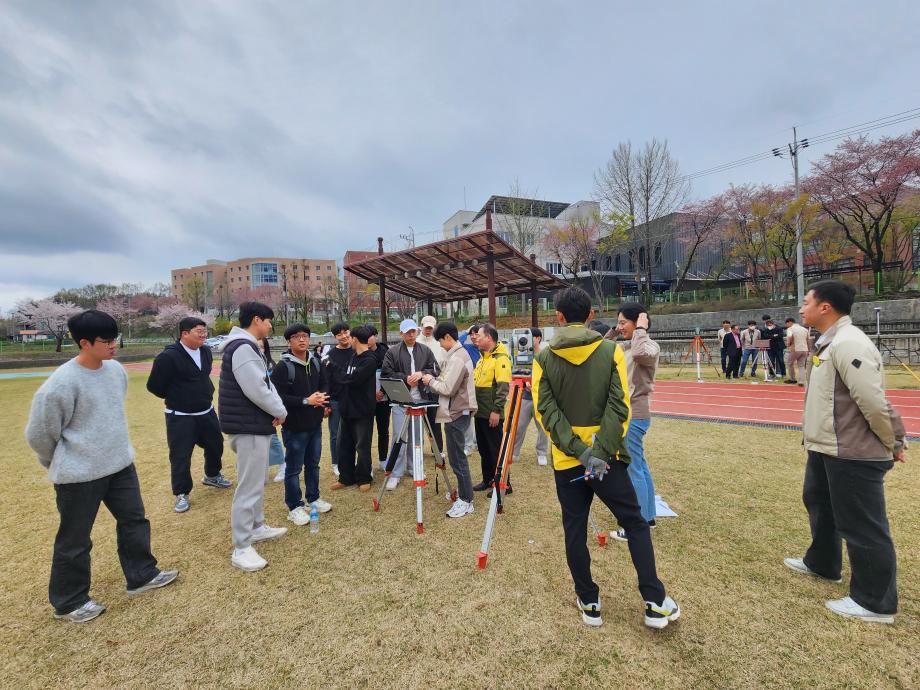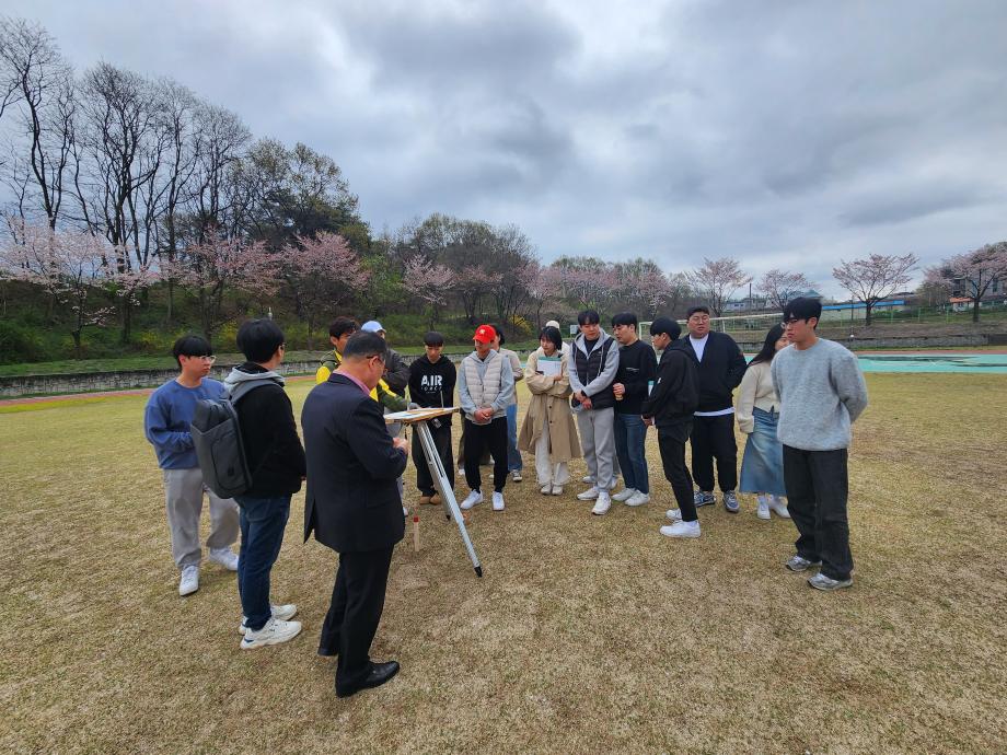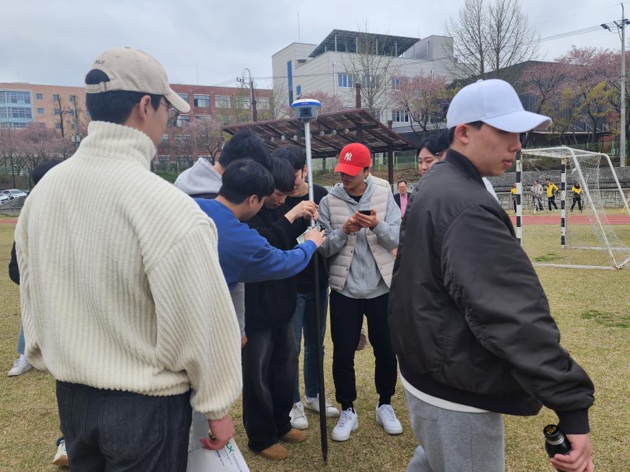 학교에서 익히며 배우던 지적측량실습을 공사분들과 실외에 나가서 평판측량, 토탈, GNSS측량, 모바일 랜디고를 배우고 사용하면서 지적실무를 경험해보는 시간을 가졌습니다.