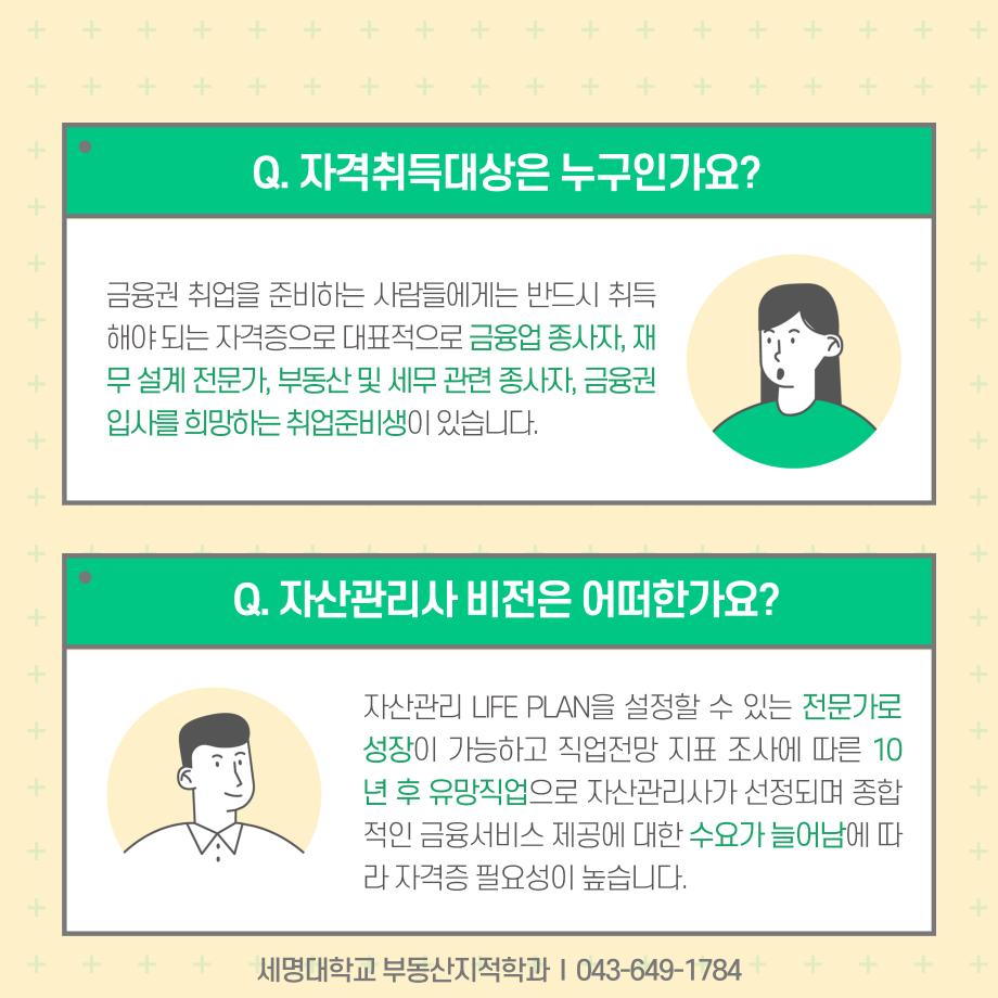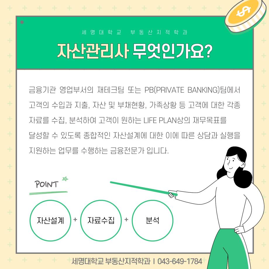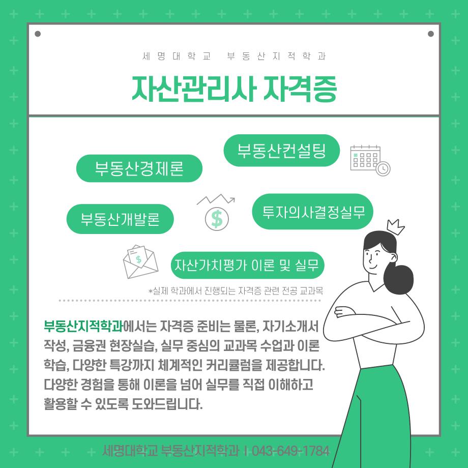 본문 시작 홈으로 학과 소식 학과소개 취업 및 진로 언론 및 보도 학과 소식 대학원 홈페이지가이드 행사사진게시판 행사사진게시판 공지사항 일반자료실 강의자료실 부동산학보 동아리 행사사진게시판 페이스북 트위터 프린트 자산관리사 소개 카드입니다. 부동산지적학과 1671 2024-12-05 자산관리사 소개 카드입니다. 자산관리사에 관심있는 학생들은 참고하여 주세요. 목록 이전2024년도 스마트시티의 이해 - 1학년 해외도시 인포그라피 결과물 발표 다음 측량 및 지형공간정보기사 소개카트 담당부서 : 부동산지적학과 담당자 : - 연락처 : 043-649-1369 최종수정일 : 2024-10-26 만족도조사 만족도 조사 이 페이지에서 제공하는 정보에 대하여 만족하시나요? 매우만족 만족 보통 불만족 매우불만족