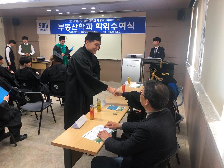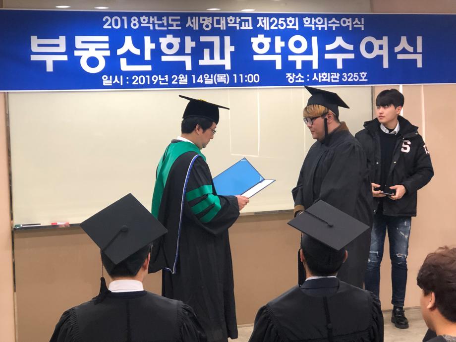 본문 시작 홈으로 학과 소식 학과소개 취업 및 진로 언론 및 보도 학과 소식 대학원 홈페이지가이드 행사사진게시판 행사사진게시판 공지사항 일반자료실 강의자료실 부동산학보 동아리 행사사진게시판 페이스북 트위터 프린트 2019년도 부동산학과 학위수여식 부동산학과 8577 2019-02-19 2019년도 부동산학과 학위수여식 일 시 : 2019년 2월 14일 목요일 장 소 : 사회과학관 325호 2019년도 부동산학과 학위수여식에서는 총 28명의 학생이 졸업하였습니다. 졸업을 진심으로 축하드리며 또 다른 시작에 늘 행운이 가득하기를 바랍니다. 목록 이전김행종 교수님 세명고등학교 3학년 대상 고교특강 실시 다음 2019학년도 부동산학과MT 현장 사진 담당부서 : 부동산지적학과 담당자 : - 연락처 : 043-649-1369 최종수정일 : 2024-10-26 만족도조사 만족도 조사 이 페이지에서 제공하는 정보에 대하여 만족하시나요? 매우만족 만족 보통 불만족 매우불만족
