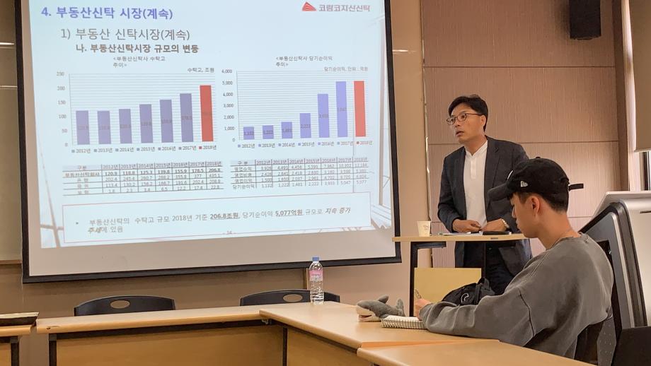 본문 시작 홈으로 학과 소식 학과소개 취업 및 진로 언론 및 보도 학과 소식 대학원 홈페이지가이드 행사사진게시판 행사사진게시판 공지사항 일반자료실 강의자료실 부동산학보 동아리 행사사진게시판 페이스북 트위터 프린트 2019년도 부동산학과 제4회 학술특강(부동산자산관리실무체험 "부동산 신탁의 개념과 이해") 부동산학과 8361 2019-07-15 ◎ 2019학년도 제4회 학술특강 시행 부동산학과에서는 “부동산자산관리실무체험” 교과목과 관련하여 아래와 같이 학술특강을 시행하였습니다. 부동산 산업 실무자의 특강을 통한 부동산산업을 간접체험하고, 관련 지식을 보다 심화 학습하였습니다. ▸ 일 시 : 2019년 05월 24일(금) 09:30~13:30 ▸ 주 제 : 부동산 신탁의 개념과 이해 ▸ 강연자 : 코람코자산신탁 사업본부장 상무 이충성 목록 이전2019학년도 제3회 학술특강(부동산자산관리실무체험 "부동산 개발/펀드투자 사례 -상업시설중심-") 다음 2019학년도 꿈설계학기 담당부서 : 부동산지적학과 담당자 : - 연락처 : 043-649-1369 최종수정일 : 2024-10-26 만족도조사 만족도 조사 이 페이지에서 제공하는 정보에 대하여 만족하시나요? 매우만족 만족 보통 불만족 매우불만족