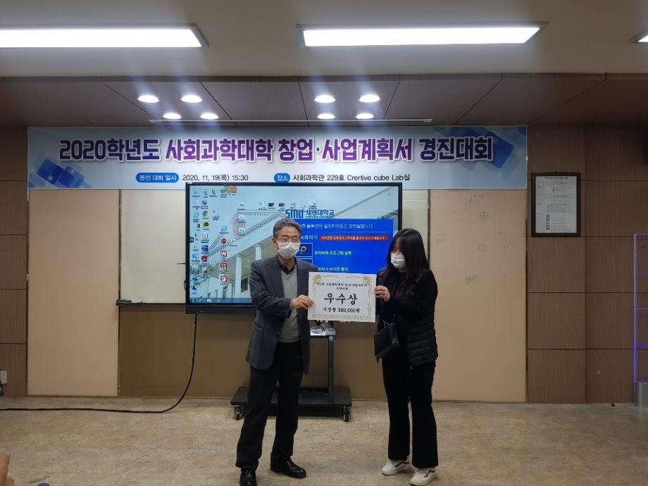 축! 제1회 2020학년도 사회과학대학 창업 사업계획서 경진대회 우수상 수상