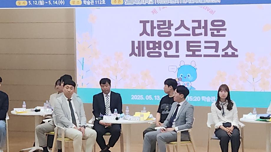 본문 시작 홈으로 커뮤니티 학과소개 교수소개 학과과정 커뮤니티 홈페이지가이드 포토갤러리 학과공지 채용정보 학과일정 포토갤러리 전공자료실 정보자료실 포토갤러리 페이스북 트위터 프린트 자랑스러운 세명인 토크쇼 전기공학과 2871 2025-05-15 2025년 5월 13일(화) 학술관 112호에서 열린 자랑스러운 세명인 토크쇼에 현재 한국철도공사(코레일)에서 전기기술팀장으로 근무하고 계신 황윤철(98학번_전기공학과) 졸업생을 모셨습니다. 목록 이전2025 농촌 봉사활동 담당부서 : 전기공학과 담당자 : - 연락처 : 043-649-1307 최종수정일 : 2024-10-26 만족도조사 만족도 조사 이 페이지에서 제공하는 정보에 대하여 만족하시나요? 매우만족 만족 보통 불만족 매우불만족
