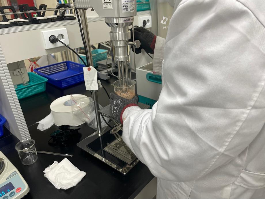 2. 담긴 성분들을 디스퍼믹서를 통하여 잘 풀어준다음 파우더를 넣고 돌려준다.