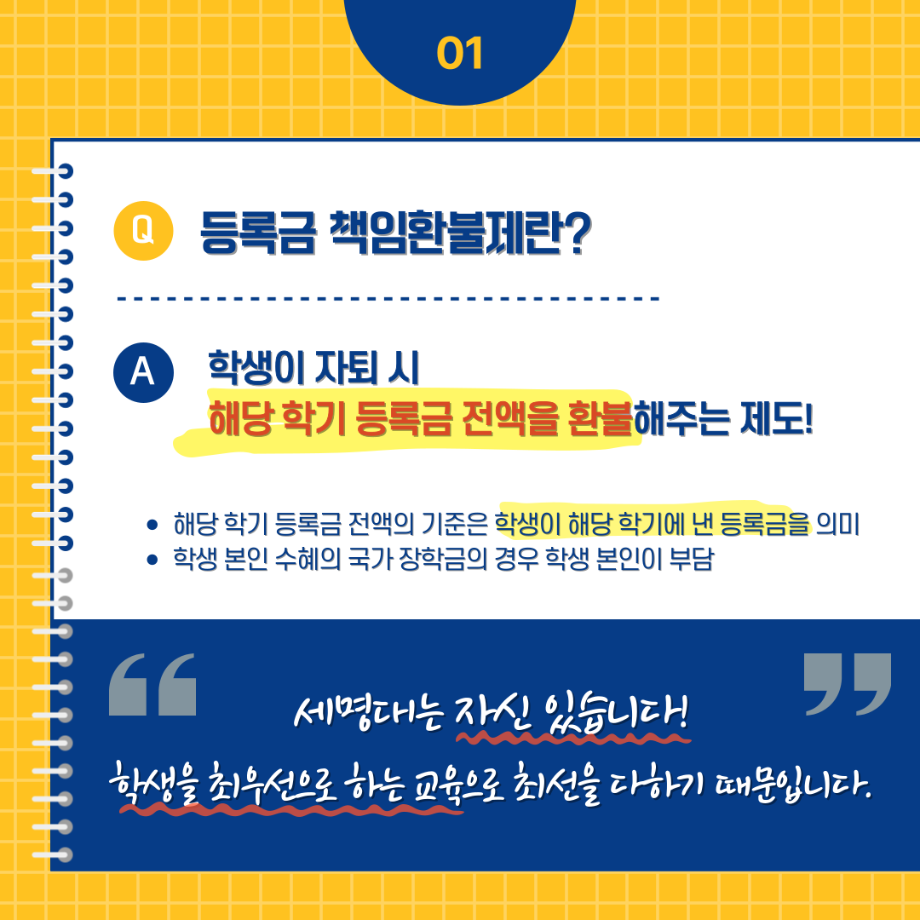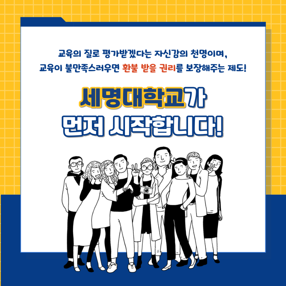 본문 시작 홈으로 커뮤니티 학과소개 학과과정 대학원 커뮤니티 연구동아리 홈페이지가이드 포토갤러리 학과공지 채용정보 학과일정 포토갤러리 유튜브 인스타그램 취업현황 학생회 조직도 졸업생 숏터뷰 포토갤러리 페이스북 트위터 프린트 등록금 책임환불제 화장품뷰티학부 3108 2023-04-26 등록금 책임환불제란? 학생이 자퇴 시 해당 학기 등록금 전액을 환불해주는 제도입니다! 자세한 사항은 위 사진을 참고해 주세요! 목록 이전충북바이오헬스산업혁신센터 혁신과 공유 성과발표회 캡스톤디자인경진대회 최우수상 수상 다음 함께해요! 쓰담쓰담 플로깅 담당부서 : 바이오코스메틱학과 담당자 : - 연락처 : 043-649-1638 최종수정일 : 2024-10-26 만족도조사 만족도 조사 이 페이지에서 제공하는 정보에 대하여 만족하시나요? 매우만족 만족 보통 불만족 매우불만족