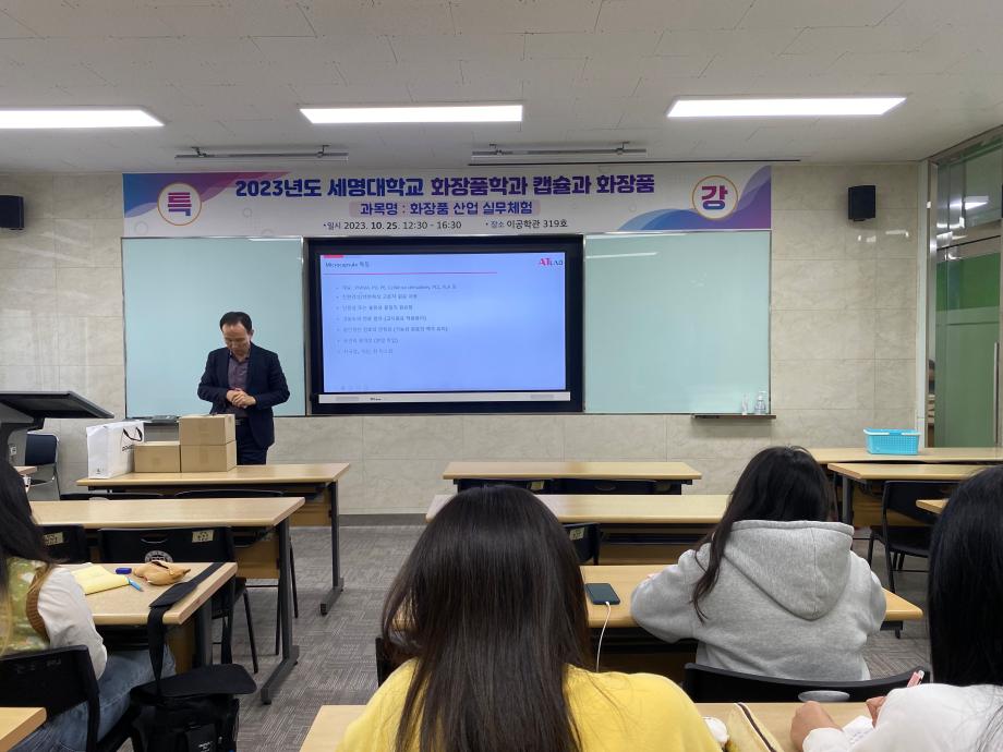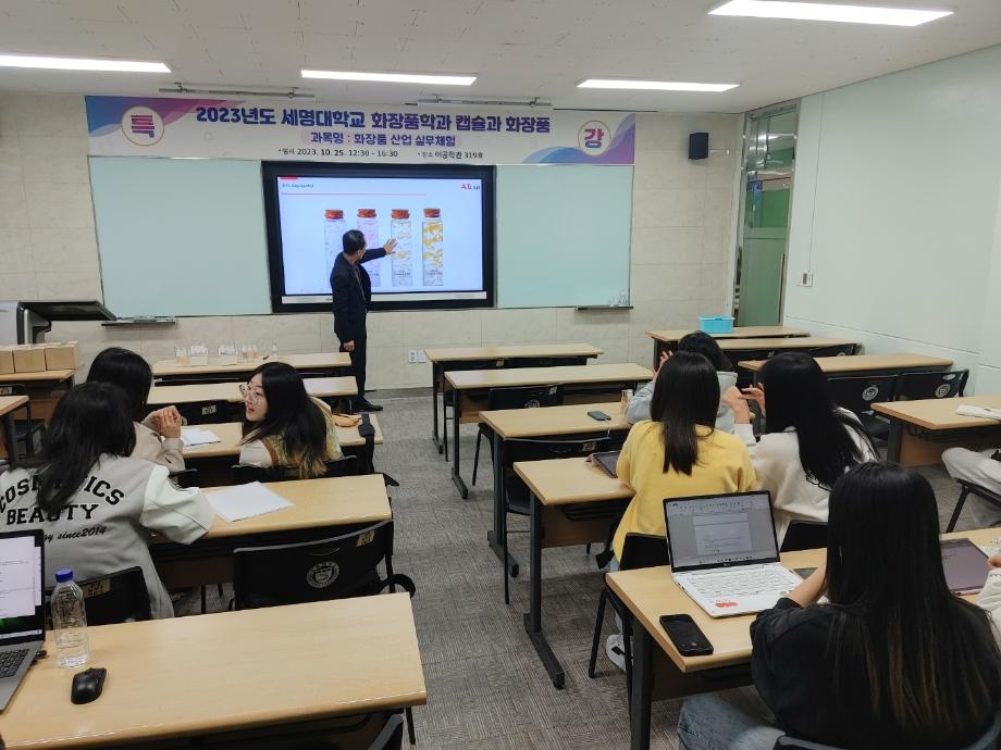본문 시작 홈으로 커뮤니티 학과소개 학과과정 대학원 커뮤니티 연구동아리 홈페이지가이드 포토갤러리 학과공지 채용정보 학과일정 포토갤러리 유튜브 인스타그램 취업현황 학생회 조직도 졸업생 숏터뷰 포토갤러리 페이스북 트위터 프린트 2023학년도 2학기 화장품 산업 실무체험 제4회 전문가 초청 특강 화장품뷰티학부 2914 2023-10-27 2023학년도 2학기 화장품 산업 실무체험 교과목 전문가를 초청하여 4회차로 특강을 진행하였습니다. 2023년 10월 25일 수요일에 화장품과 캡슐이라는 주제로 특강을 진행하였고 특강을 맡아주신 강사님께서는 현재 (주) 에이티랩 대표이사로 계시는 김영택 대표님입니다. 목록 이전S-BOOT 전문가 초청 취업코칭 특강 다음 2023학년도 화장품산업실무체험 제5회 특강 담당부서 : 바이오코스메틱학과 담당자 : - 연락처 : 043-649-1638 최종수정일 : 2024-10-26 만족도조사 만족도 조사 이 페이지에서 제공하는 정보에 대하여 만족하시나요? 매우만족 만족 보통 불만족 매우불만족