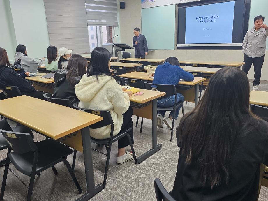 본문 시작 홈으로 커뮤니티 학과소개 학과과정 대학원 커뮤니티 연구동아리 홈페이지가이드 포토갤러리 학과공지 채용정보 학과일정 포토갤러리 유튜브 인스타그램 취업현황 학생회 조직도 졸업생 숏터뷰 포토갤러리 페이스북 트위터 프린트 S-BOOT 2차 전문가 초빙 취업코칭 특강 바이오코스메틱학과 2690 2023-11-16 ㅇ 일 시 : ‘23. 11. 01(수) 16:30 ~ 20:30 ㅇ 장 소 : 이공학관 319호 ㅇ 주 관 : 세명대학교 화장품뷰티생명공학부 ㅇ 참 석 : 총 13명 코바스 이상종 연구소장님께서 회장품회사 업무에 대해 알아보기라는 주제로 강의해주셨습니다. 목록 이전2023학년도 화장품산업실무체험 제5회 특강 다음 세명대학교 화장품학과 2023학년도 농촌봉사활동 담당부서 : 바이오코스메틱학과 담당자 : - 연락처 : 043-649-1638 최종수정일 : 2024-10-26 만족도조사 만족도 조사 이 페이지에서 제공하는 정보에 대하여 만족하시나요? 매우만족 만족 보통 불만족 매우불만족