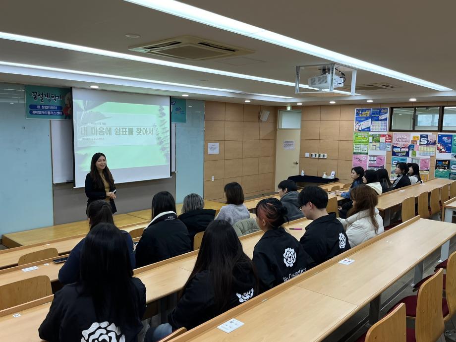 본문 시작 홈으로 커뮤니티 학과소개 학과과정 대학원 커뮤니티 연구동아리 홈페이지가이드 포토갤러리 학과공지 채용정보 학과일정 포토갤러리 유튜브 인스타그램 취업현황 학생회 조직도 졸업생 숏터뷰 포토갤러리 페이스북 트위터 프린트 2024학년도 바이오코스메틱학과 꿈설계학기 바이오코스메틱학과 2620 2024-02-22 세명대학교에서 2024년 2월 19일부터 21일까지 꿈설계학기를 진행하였습니다. 꿈설계학기동안 신입생들과 선후배 교수님과 소통하고 진로를 설계하며 전공에 관련한 화장품임상센터에서의 견학을 가지면서 학교를 알아가고 새로운 학우들과 서로 소통하는 시간을 가질 수 있었습니다. 목록 이전비교과프로그램 맞춤형화장품 오픈랩 행사 다음 2024학년도 보건바이오대학배 체육대회 담당부서 : 바이오코스메틱학과 담당자 : - 연락처 : 043-649-1638 최종수정일 : 2024-10-26 만족도조사 만족도 조사 이 페이지에서 제공하는 정보에 대하여 만족하시나요? 매우만족 만족 보통 불만족 매우불만족