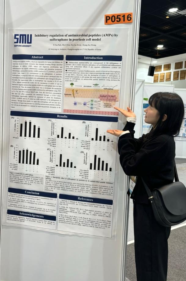 본문 시작 홈으로 커뮤니티 학과소개 학과과정 대학원 커뮤니티 연구동아리 홈페이지가이드 포토갤러리 학과공지 채용정보 학과일정 포토갤러리 유튜브 인스타그램 취업현황 학생회 조직도 졸업생 숏터뷰 포토갤러리 페이스북 트위터 프린트 2024 한국생물공학회 추계 학술발표대회 참가 바이오코스메틱학과 2488 2024-10-10 학회명 : 2024 KSBB Fall Meeting and International Symposium 일 자 : 2024.09.25(수)-27(금) 장 소 : 제주 ICC ‘건선 모델에서 Sulforaphane의 항균펩타이드 (AMPs) 억제 효능’과 ‘건선 모델에서 Ellagic acid의 케모카인 억제 효능‘의 연구를 주제로 박시은, 한예주 학생이 포스터 발표를 진행했습니다! 목록 이전제 32회 청룡축전 “향수 원데이 클래스 이벤트 부스 다음 2024 오송화장품뷰티산업엑스포 현장체험 담당부서 : 바이오코스메틱학과 담당자 : - 연락처 : 043-649-1638 최종수정일 : 2024-10-26 만족도조사 만족도 조사 이 페이지에서 제공하는 정보에 대하여 만족하시나요? 매우만족 만족 보통 불만족 매우불만족