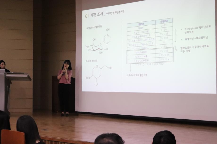 본문 시작 홈으로 커뮤니티 학과소개 학과과정 대학원 커뮤니티 연구동아리 홈페이지가이드 포토갤러리 학과공지 채용정보 학과일정 포토갤러리 유튜브 인스타그램 취업현황 학생회 조직도 졸업생 숏터뷰 포토갤러리 페이스북 트위터 프린트 제2회 캡스톤 디자인 대회 화장품뷰티생명공학부 7630 2019-06-13 지난 06월 11일 화요일, 우리 화장품뷰티생명공학부 3-4학년 학생들이 참가하는 제2회 캡스톤 디자인 대회가 학술관 112호에서 열렸습니다. LINC+사업단의 지원을 받고 장혜인 교수님의 지도 아래, 기초화장품제조및실습 과목과 기능성화장품제조및실습 과목을 수강한 3-4학년 학생들이 다양한 아이디어를 발표했습니다. 학생들간에 서로 질의응답 시간을 가지며 제안된 아이디어에 대해 문제점을 함께 생각해보고 고민해 보기도 하는 유익한 시간이었습니다. 목록 이전학부동아리 활동 - 순정 다음 대제중 전공체험 프로그램 시행 담당부서 : 바이오코스메틱학과 담당자 : - 연락처 : 043-649-1638 최종수정일 : 2024-10-26 만족도조사 만족도 조사 이 페이지에서 제공하는 정보에 대하여 만족하시나요? 매우만족 만족 보통 불만족 매우불만족