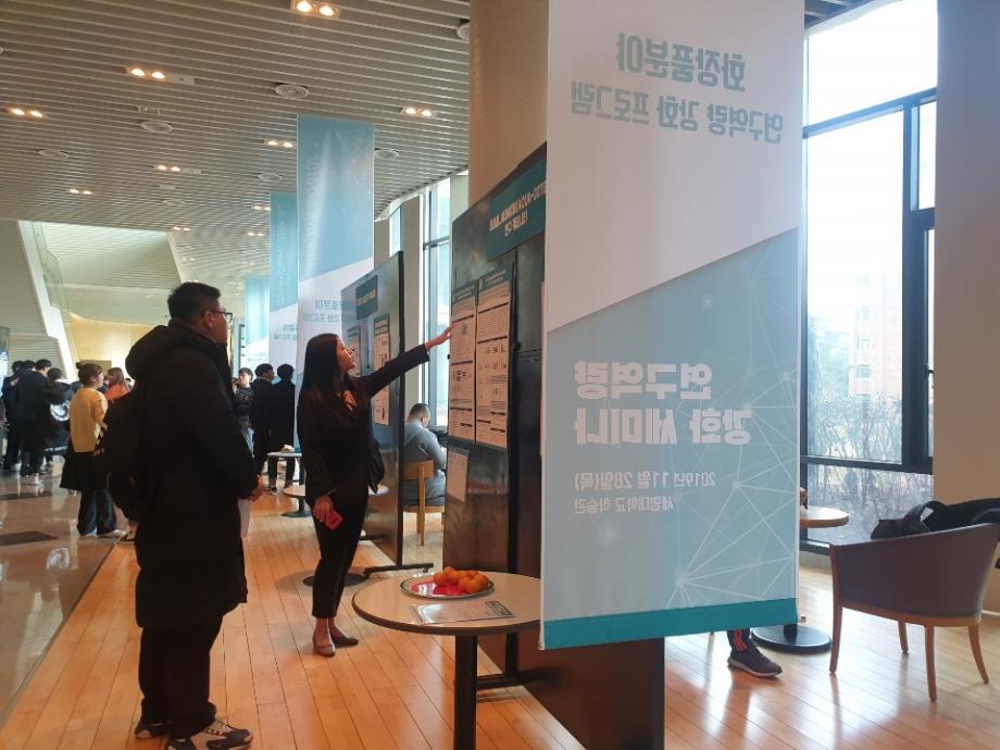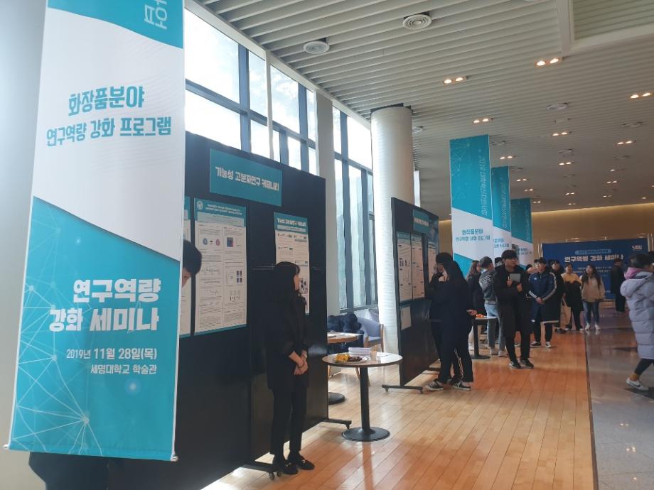 본문 시작 홈으로 커뮤니티 학과소개 학과과정 대학원 커뮤니티 연구동아리 홈페이지가이드 포토갤러리 학과공지 채용정보 학과일정 포토갤러리 유튜브 인스타그램 취업현황 학생회 조직도 졸업생 숏터뷰 포토갤러리 페이스북 트위터 프린트 2019학년도 연구역량 강화 세미나 화장품뷰티생명공학부 8062 2019-11-28 2019년 11월 28일, 학술관에서 연구역량 강화 세미나가 열렸습니다. 지역연계 5팀, 한방바이오 화장품분야 9팀으로 총 14팀의 연구 커뮤니티가 참여하였고, 학술관 102호에서는 대학혁지원사업과 관련하여 시행중인 [학생참여형 지역연계 연구 프로그램]과 [힌방바이오, 화장품분야 연구역량 강화사업]의 사업성과를 발표하는 시간이 있었습니다. 학술관 로비에서는 사업 성과에 대한 포스터세션을 운영하였습니다. 목록 이전“아쿠아디테”2019 대한화장품학회 추계학술대회 참가 다음 제1회 화장품뷰티생명공학부 전공체험 워크샵 담당부서 : 바이오코스메틱학과 담당자 : - 연락처 : 043-649-1638 최종수정일 : 2024-10-26 만족도조사 만족도 조사 이 페이지에서 제공하는 정보에 대하여 만족하시나요? 매우만족 만족 보통 불만족 매우불만족