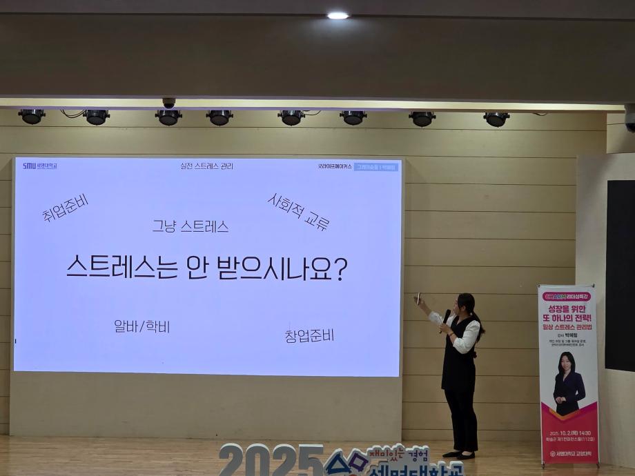 본문 시작 홈으로 커뮤니티 게시판 대학소개 교수소개 교양교육과정 교양교육 프로그램 커뮤니티 게시판 입학안내 홈페이지가이드 자료실 공지사항 자료실 학생 커뮤니티 취업정보 CHARM리더십특강 CHARM리더십특강 CHARM커뮤니케이션 제천문화탐방과 스토리텔링 CHARM인문학콘서트~2018 향토문화탐방~2018 특강 및 기타 행사 포토 갤러리 CHARM리더십특강 페이스북 트위터 프린트 2025-2학기 CHARM리더십특강 5주차 강의 교양대학 769 2025-10-02 2025-2학기 CHARM리더십특강 5주차 강의 성장을 위한 또 하나의 전략! 일상 스트레스 관리법_박혜림강사님 목록 이전2025-2학기 CHARM리더십특강 3주차 강의 다음 2025-2학기 CHARM리더십특강 9주차 강의 담당부서 : 교양대학 담당자 : - 연락처 : 043-649-7065 최종수정일 : 2024-10-26 만족도조사 만족도 조사 이 페이지에서 제공하는 정보에 대하여 만족하시나요? 매우만족 만족 보통 불만족 매우불만족
