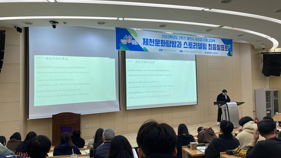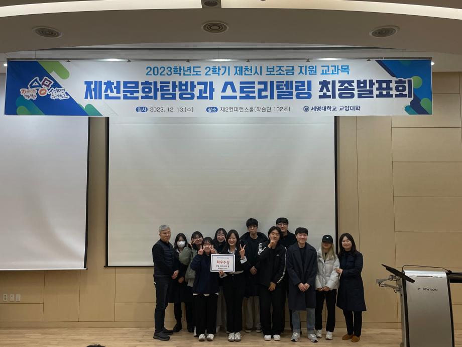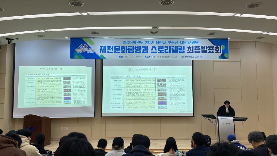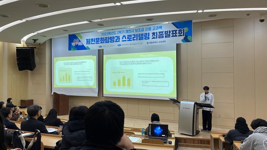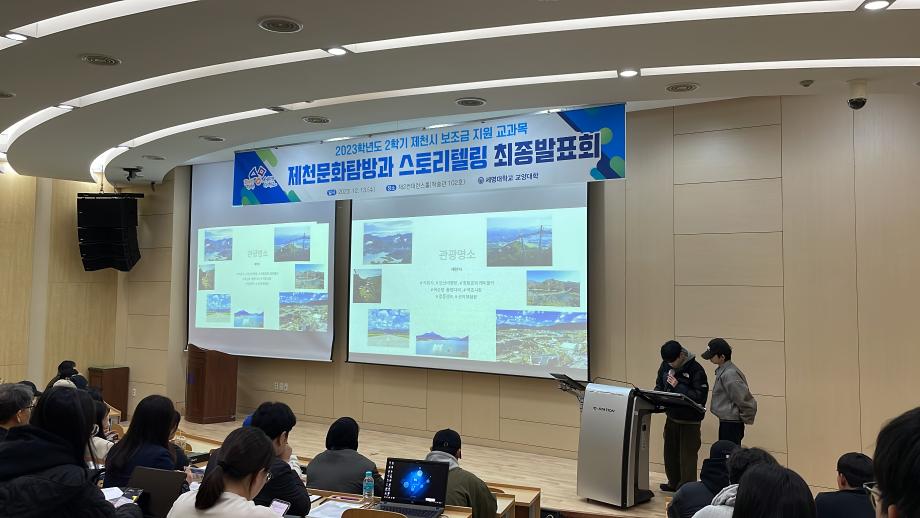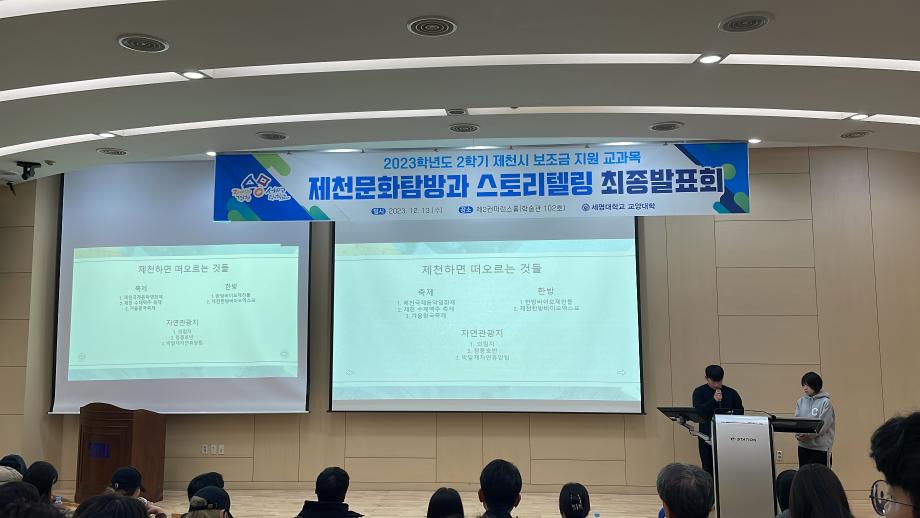 본문 시작 홈으로 커뮤니티 게시판 대학소개 교수소개 교양교육과정 교양교육 프로그램 커뮤니티 게시판 입학안내 홈페이지가이드 자료실 공지사항 자료실 학생 커뮤니티 취업정보 제천문화탐방과 스토리텔링 CHARM리더십특강 CHARM커뮤니케이션 제천문화탐방과 스토리텔링 CHARM인문학콘서트~2018 향토문화탐방~2018 특강 및 기타 행사 포토 갤러리 제천문화탐방과 스토리텔링 페이스북 트위터 프린트 2023-2학기 제천문화탐방과 스토리텔링 프레젠테이션 발표 및 수여식 교양대학 2844 2023-12-13 2023-2학기 제천문화탐방과 스토리텔링 프레젠테이션 발표 및 수여식 2023년 12월 13일(수) 13:30~15:30 / 학술관 102호 목록 이전2023-2학기 제천문화탐방과스토리텔링 4차탐방 다음 2024-1학기 제천문화탐방과스토리텔링 1주차 강의 담당부서 : 교양대학 담당자 : - 연락처 : 043-649-7065 최종수정일 : 2024-10-26 만족도조사 만족도 조사 이 페이지에서 제공하는 정보에 대하여 만족하시나요? 매우만족 만족 보통 불만족 매우불만족