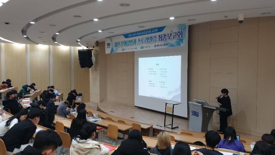 본문 시작 홈으로 커뮤니티 게시판 대학소개 교수소개 교양교육과정 교양교육 프로그램 커뮤니티 게시판 입학안내 홈페이지가이드 자료실 공지사항 자료실 학생 커뮤니티 취업정보 제천문화탐방과 스토리텔링 CHARM리더십특강 CHARM커뮤니케이션 제천문화탐방과 스토리텔링 CHARM인문학콘서트~2018 향토문화탐방~2018 특강 및 기타 행사 포토 갤러리 제천문화탐방과 스토리텔링 페이스북 트위터 프린트 2019-2학기 제천문화탐방과 스토리텔링 프레젠테이션 발표 및 수여식 교양대학 10118 2019-12-20 2019-2학기 제천문화탐방과 스토리텔링 프레젠테이션 발표 및 수여식 2019년 12월 18일(수) 13:30~15:30 / 학술관 102호 목록 이전2019-2학기 제천문화탐방과스토리텔링 4차 탐방(12월 4일) - 한방엑스포공원 다음 2020-1학기 제천문화탐방과 스토리테링 1-6주차 강의 담당부서 : 교양대학 담당자 : - 연락처 : 043-649-7065 최종수정일 : 2024-10-26 만족도조사 만족도 조사 이 페이지에서 제공하는 정보에 대하여 만족하시나요? 매우만족 만족 보통 불만족 매우불만족