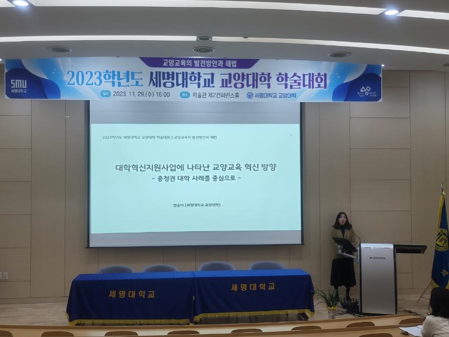 본문 시작 홈으로 커뮤니티 게시판 대학소개 교수소개 교양교육과정 교양교육 프로그램 커뮤니티 게시판 입학안내 홈페이지가이드 자료실 공지사항 자료실 학생 커뮤니티 취업정보 특강 및 기타 행사 CHARM리더십특강 CHARM커뮤니케이션 제천문화탐방과 스토리텔링 CHARM인문학콘서트~2018 향토문화탐방~2018 특강 및 기타 행사 포토 갤러리 특강 및 기타 행사 페이스북 트위터 프린트 2023학년도 세명대학교 교양대학 학술대회 교양대학 2356 2023-11-29 2023학년도 세명대학교 교양대학 학술대회 -교양교육의 발전방안과 해법- 목록 이전2023-1[미래사회CHARM인성]교과목 결과 공유 세미나 담당부서 : 교양대학 담당자 : - 연락처 : 043-649-7065 최종수정일 : 2024-10-26 만족도조사 만족도 조사 이 페이지에서 제공하는 정보에 대하여 만족하시나요? 매우만족 만족 보통 불만족 매우불만족