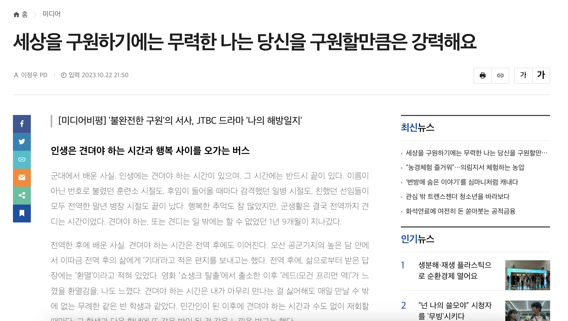 "2022년 방영된 JTBC 드라마 '나의 해방일지'. 일상은 우리를 구속한다.