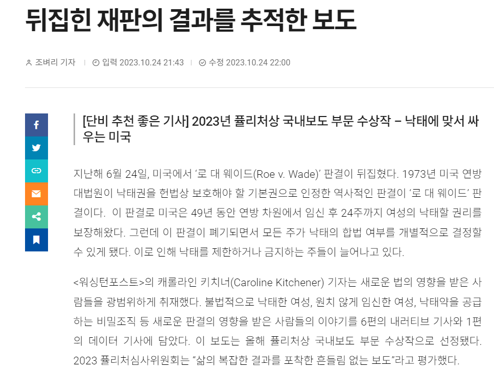 지난해 6월 24일, 미국에서 ‘로 대 웨이드(Roe v. Wade)’ 판결이 뒤집혔다.