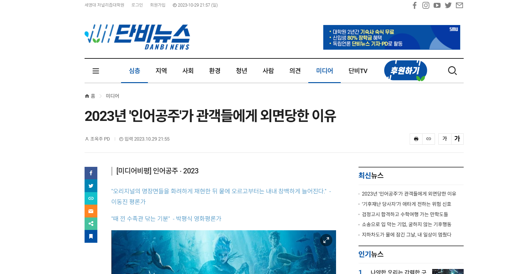 디즈니가 2023년 야심차게 공개한 실사판 리메이크 영화 인어공주가 논란에 휩싸였다.