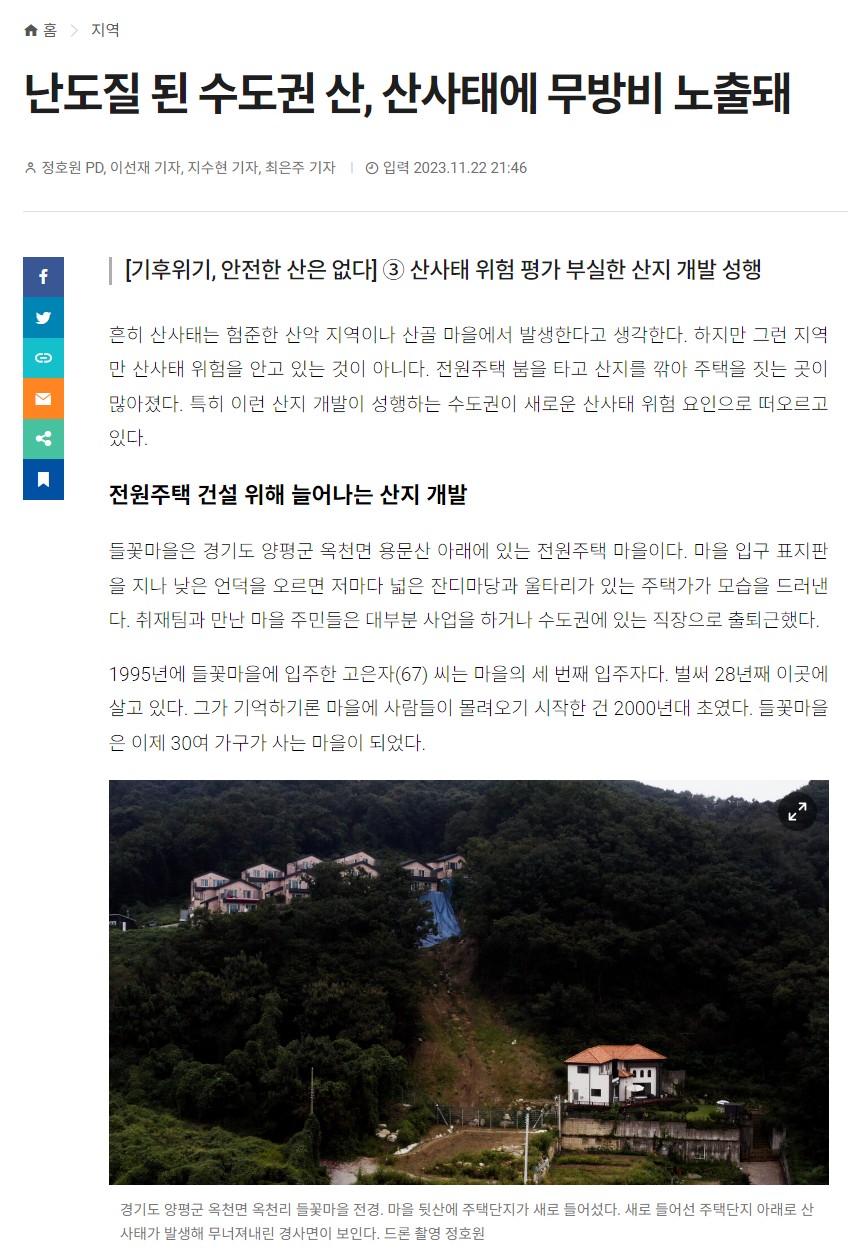 난도질 된 수도권 산, 산사태에 무방비 노출돼