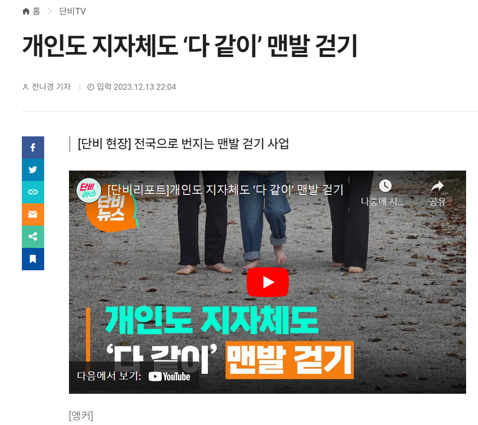 개인도 지자체도 ‘다 같이’ 맨발 걷기