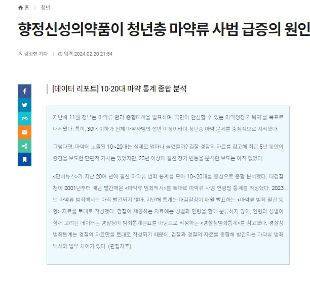 향정신성의약품이 청년층 마약류 사범 급증의 원인