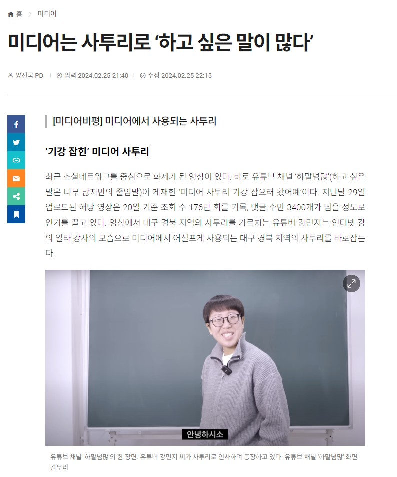 미디어는 사투리로 ‘하고 싶은 말이 많다’