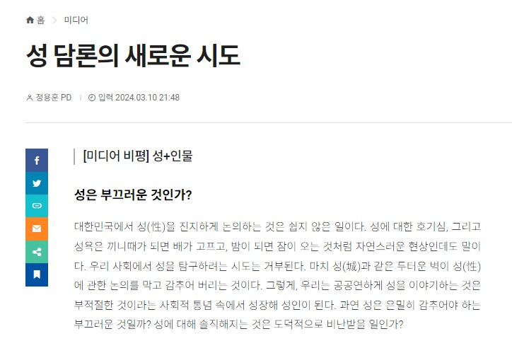 대한민국에서 성(性)을 진지하게 논의하는 것은 쉽지 않은 일이다. 성에 대한 호기심, 그리고 성욕은 끼니때가 되면 배가 고프고, 밤이 되면 잠이 오는 것처럼 자연스러운 현상인데도 말이다.
