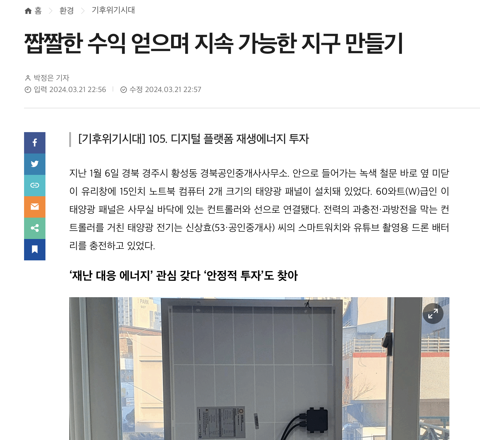 태양광 전기의 주인공과 사연이 궁금하다면 아래 기사를 확인해주세요