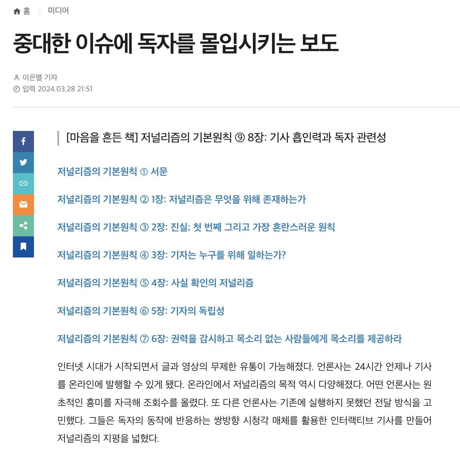 저널리즘의 기본원칙 8장은 기사 흡인력과 독자 관련성을 다룹니다.