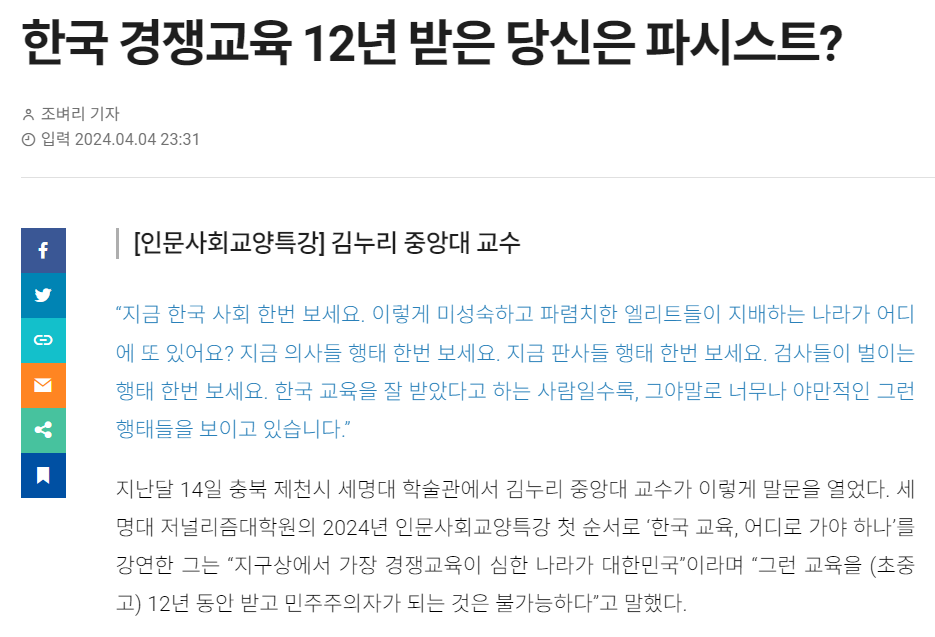 한국 경쟁교육 12년 받은 당신은 파시스트?