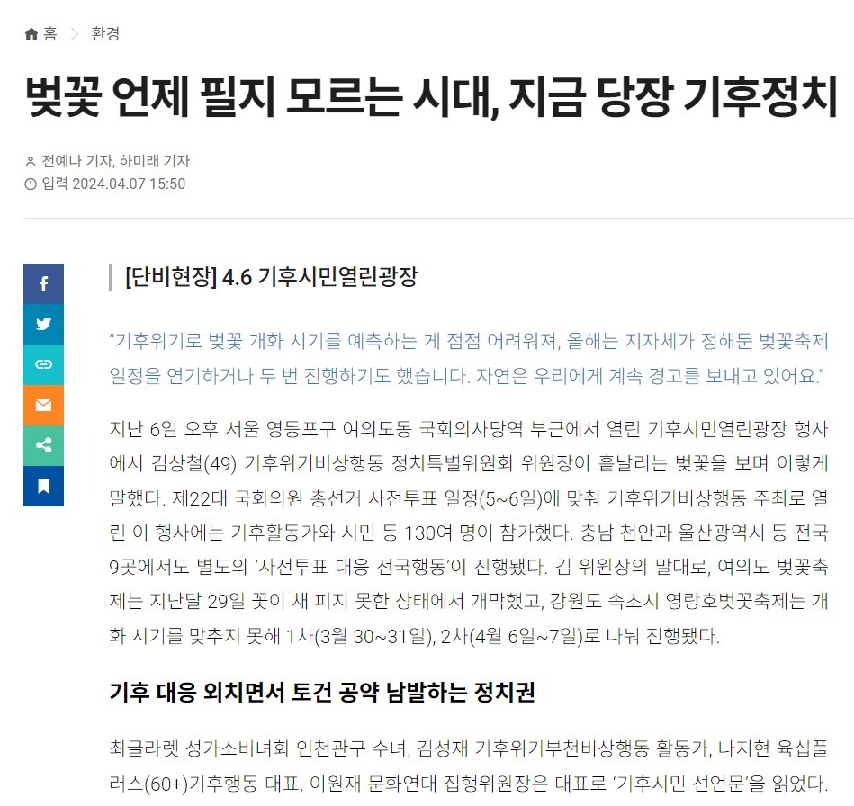벚꽃 언제 필지 모르는 시대, 지금 당장 기후정치