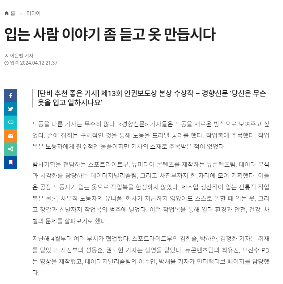 노동을 다룬 기사는 무수히 많다. <경향신문> 기자들은 노동을 새로운 방식으로 보여주고 싶었습니다.