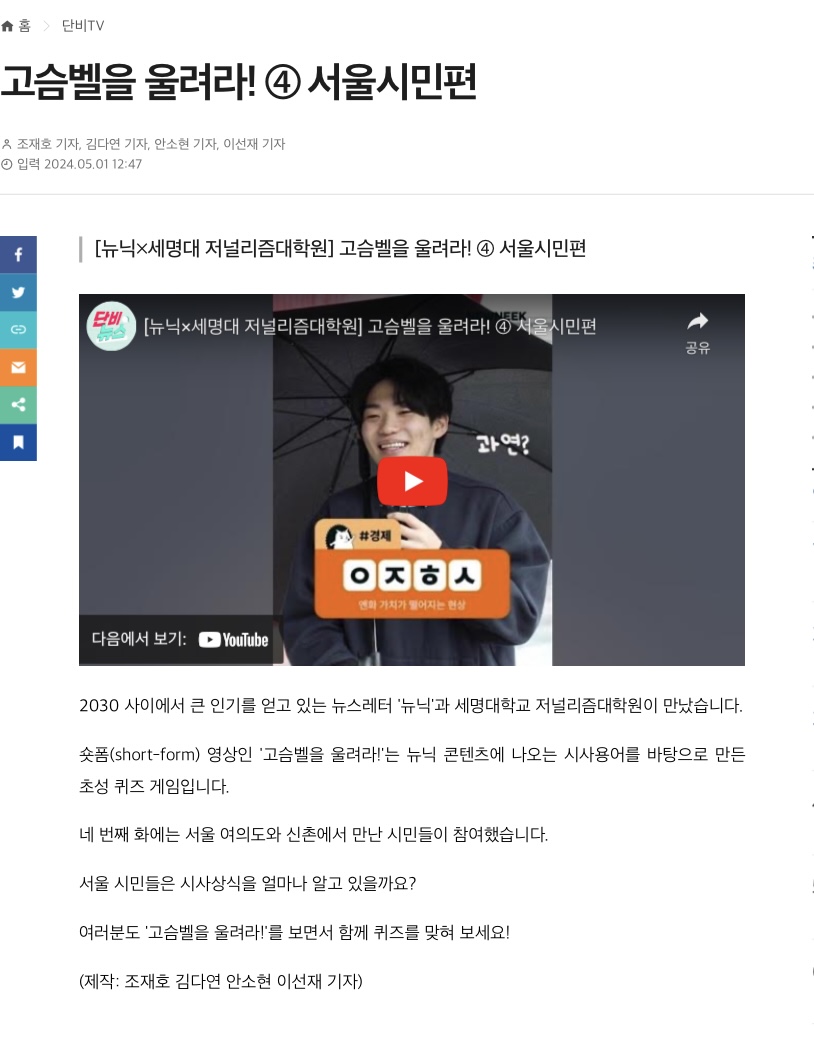 2030 사이에서 큰 인기를 얻고 있는 뉴스레터 '뉴닉'과 세명대학교 저널리즘대학원이 만났습니다.