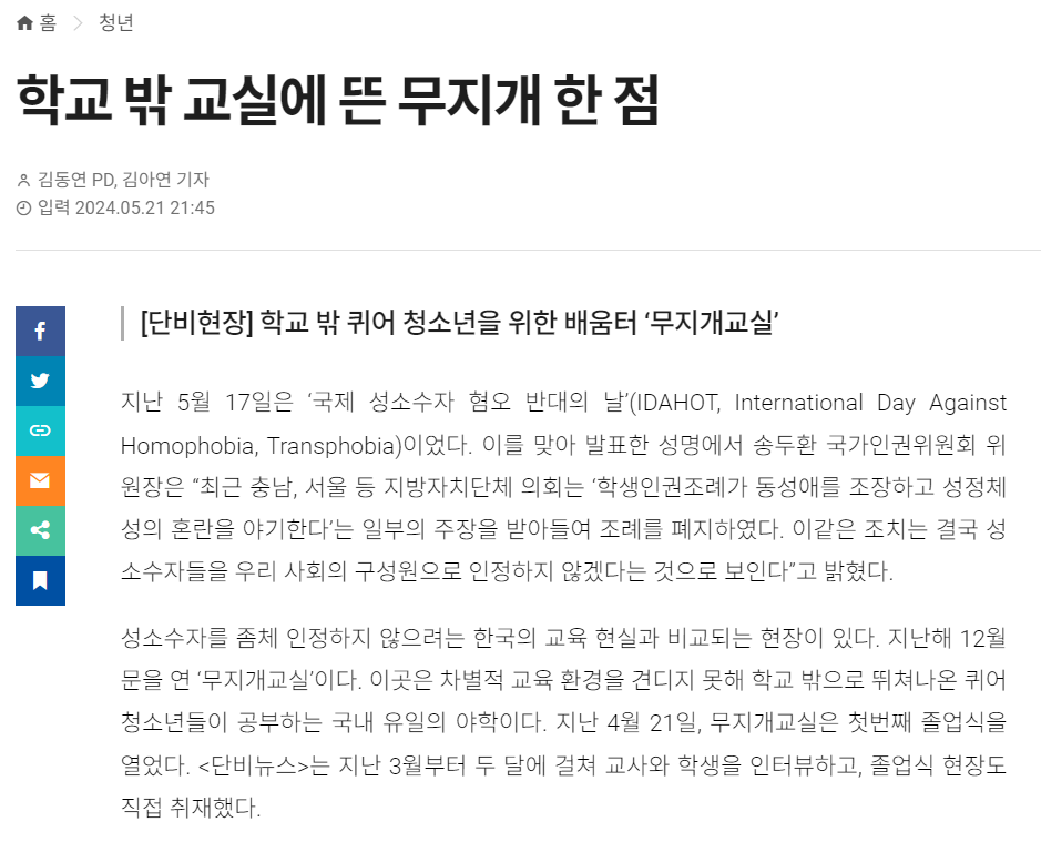 그들은 무지개교실을 이렇게 설명했다.