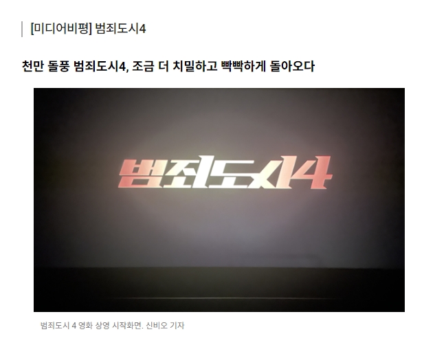 범죄도시4가 현대사회에 일어날 수 있는 새로운 유형의 범죄 이야기를 담아 다시 돌아왔다. 오픈소스 AI를 이용한 범죄부터 블록체인 전자화폐 범죄, 순직한 경찰공무원의 처우와 해외 온라인 도박장 문제까지 내용이 더욱 다양하고 치밀해졌다. 범죄도시4는 입소문을 타고 개봉 22일 만에 관람객 천만을 넘어섰다. 올 2월 개봉한 ‘파묘’에 이어 두 번째다. 시리즈물로는 누적 관람객 4천만을 넘어섰다.