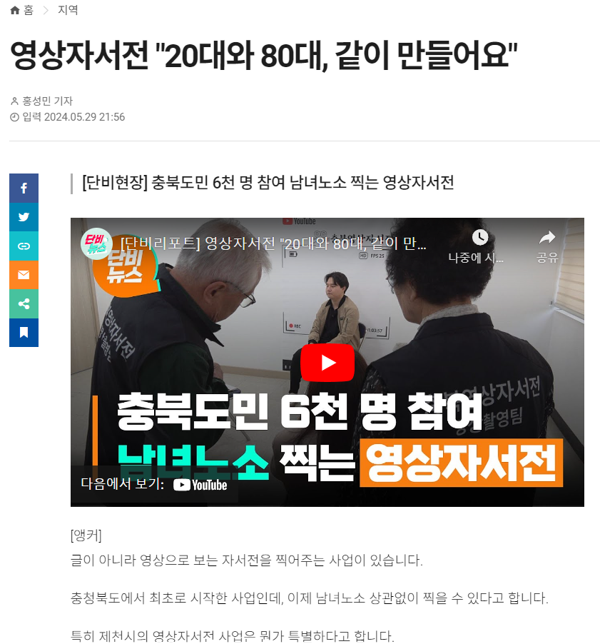 글이 아니라 영상으로 보는 자서전을 찍어주는 사업이 있습니다.