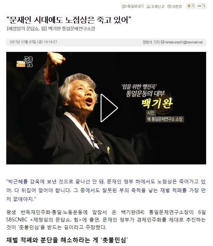 본문 시작 게시판 대학원소개 교수/학생소개 교과과정 입학/학사안내 공지사항 게시판 저널리즘연구소 홈페이지가이드 단비뉴스 편집실 단비뉴스 편집실 단비서재 세저리 이야기 언론사 채용공고 언론계 동향 언시 후기 사진첩 언론 현장에서 단비뉴스 편집실 페이스북 트위터 프린트 “문재인 시대에도 노점상은 죽고 있어” 임형준 조회 : 3303 등록일 : 2017-07-08 목록 이전서울 뒷산에서 받은 히말라야의 기운 다음 수탈의 땅에 남은 아픈 기억의 장소 댓글수 1개 임형준 2017-07-27 17:23:22기사전문을 확인하려면 아래 링크를 클릭하세요! http://www.danbinews.com/news/articleView.html?idxno=9020 * 작성자 * 내용 댓글은 로그인 후에 이용해 주세요. 로그인