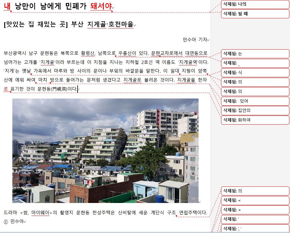 오늘은 부산 지게골·호천마을을 다녀온 민수아 기자의 '맛있는 집 재밌는 곳' 기사입니다. 지극히 평범한 산비탈 마을 '지게골(문현동)'이 KBS에서 방영해 인기를 끈 드라마 <쌈, 마이웨이> 촬영지로 유명해지면서 겪는 여러가지 고충을 짚었습니다. 자세한 내용은 기사를 통해 확인하세요!