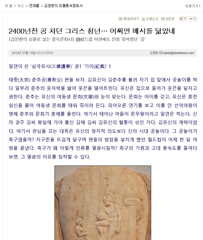 본문 시작 게시판 대학원소개 교수/학생소개 교과과정 입학/학사안내 공지사항 게시판 저널리즘연구소 홈페이지가이드 단비뉴스 편집실 단비뉴스 편집실 단비서재 세저리 이야기 언론사 채용공고 언론계 동향 언시 후기 사진첩 언론 현장에서 단비뉴스 편집실 페이스북 트위터 프린트 2400년전 공 차던 그리스 청년… 어쩌면 메시를 닮았네 장은미 조회 : 3298 등록일 : 2018-07-18 목록 이전청년은 농촌서 행복하게 살 수 있을까 다음 ‘슈퍼을’ 노동자가 ‘사업자’라고? 댓글수 1개 냐옹 2018-07-18 23:16:03기사전문을 확인하려면 아래 링크를 클릭하세요!http://www.danbinews.com/news/articleView.html?idxno=10436 * 작성자 * 내용 댓글은 로그인 후에 이용해 주세요. 로그인