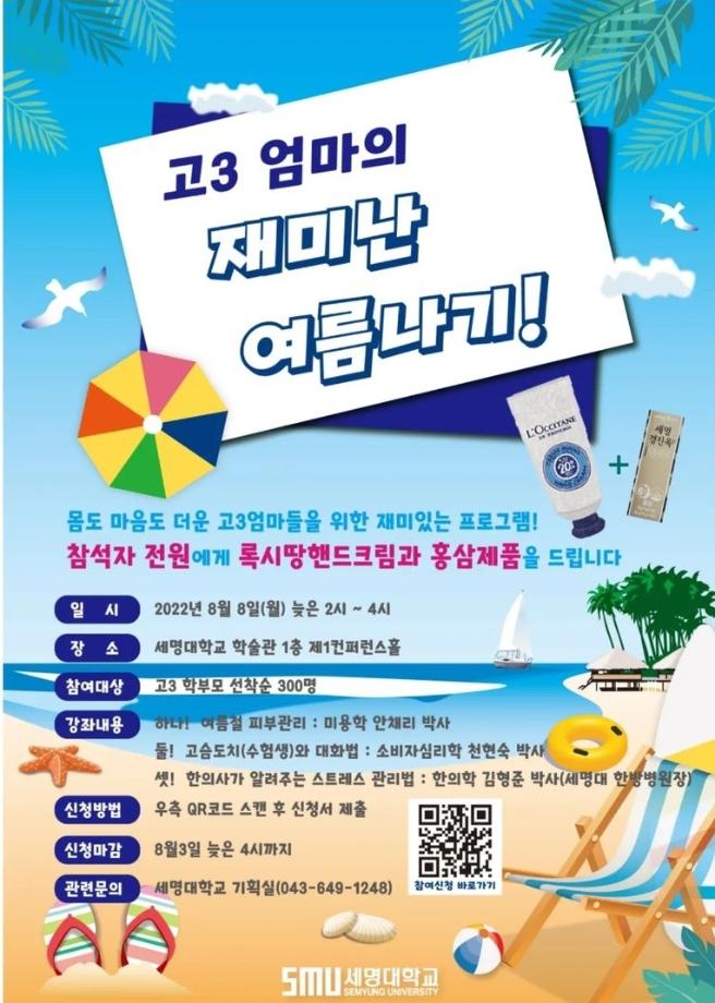 본문 시작 홈으로 커뮤니티 학과소개 교수소개 학과과정 커뮤니티 대학원 홈페이지가이드 포토갤러리 공지사항 채용정보 포토갤러리 Youtube 바로가기 Instargram 바로가기 Blog 바로가기 Facebook 바로가기 포토갤러리 페이스북 트위터 프린트 수험생 학부모의 재미난 여름나기 뷰티케어학 2584 2022-08-11 뷰티케어학과 안채리 교수는 '여름철 피부관리'에 대해 특강을 진행하였습니다. 우리 젊으신 총장님! 멋짐뿜뿜 ~ 입학처장님의 워딩 좋으신 강연과 명의이자 한의학과 교수님의 위트 넘치는 명강의👍가 있었습니다!!^^ 일시 : 08월 08일(월) 14~16시 장소 : 세명대학교 학술관 컨퍼런스홀 목록 이전시그니처 프로그램을 위한 학과 홍보 유튜브 동영상 촬영 다음 배화여자고등학교 입시홍보