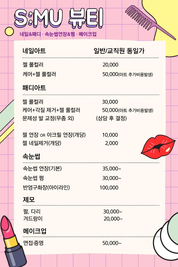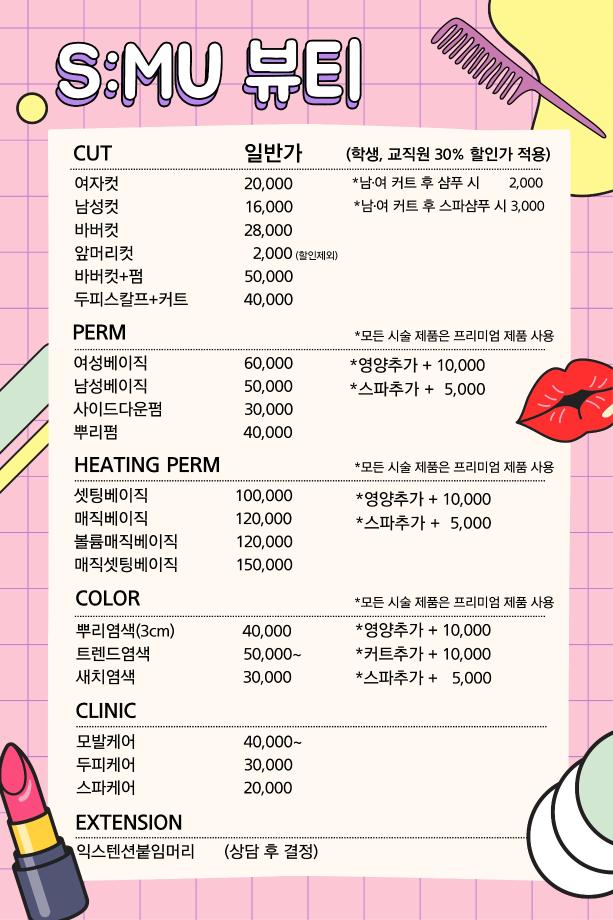 본문 시작 홈으로 커뮤니티 학과소개 교수소개 학과과정 커뮤니티 대학원 홈페이지가이드 포토갤러리 공지사항 채용정보 포토갤러리 Youtube 바로가기 Instargram 바로가기 Blog 바로가기 Facebook 바로가기 포토갤러리 페이스북 트위터 프린트 세명대학교 S:MU 뷰티 살롱 OPEN 뷰티케어학 2988 2023-09-01 1. 오픈일 : 2023년 9월 1일 2. 이용안내 : 전화 or 네이버 예약 3. 할인 : 세명대학교 교직원 인증 시 할인 된 가격으로 이용하실 수 있습니다 4. 위치 : 뷰티케어센터 2층 5. 관련문의 : 043-649-7368 목록 이전재학생 모교방문단: 정신여자고등학교 다음 2023년도 2학기 개강총회