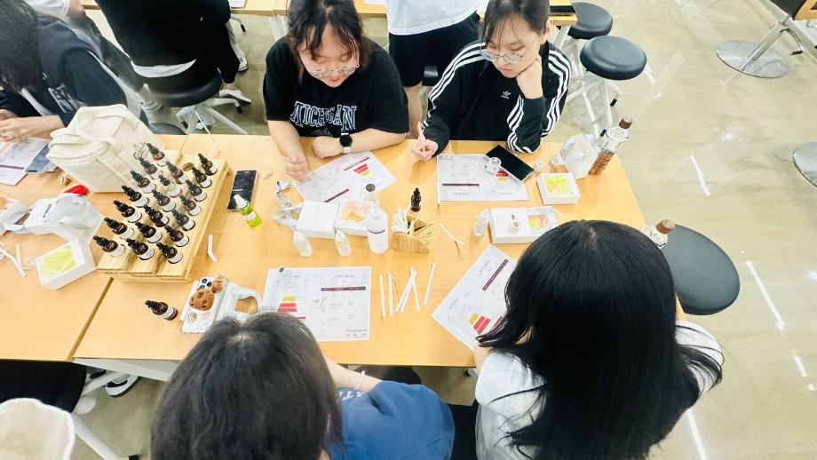 본문 시작 홈으로 커뮤니티 학과소개 교수소개 학과과정 커뮤니티 대학원 홈페이지가이드 포토갤러리 공지사항 채용정보 포토갤러리 Youtube 바로가기 Instargram 바로가기 Blog 바로가기 Facebook 바로가기 포토갤러리 페이스북 트위터 프린트 뷰티케어학과 2024 향수 만들기 뷰티케어학과 2164 2024-06-13 사람을 보여주는 것에 있어, 외적인 부분도 있지만, 또 느낌적인 부분이 있는데요. 이 사람의 느낌을 가장 잘 표현하는 것이 그 사람이 사용하고 있는 향수가 아닐까 싶어요. 자신만의 향을 만들고 자신이 만든 향으로 자신을 치창하는 모습이 뷰티케어학과와 잘 어울리는 수업이 아니었나 싶네요 목록 이전뷰티케어학과 청주SBS뷰티아카데미 입시설명회 다음 세명대학교 뷰티케어센터 소개