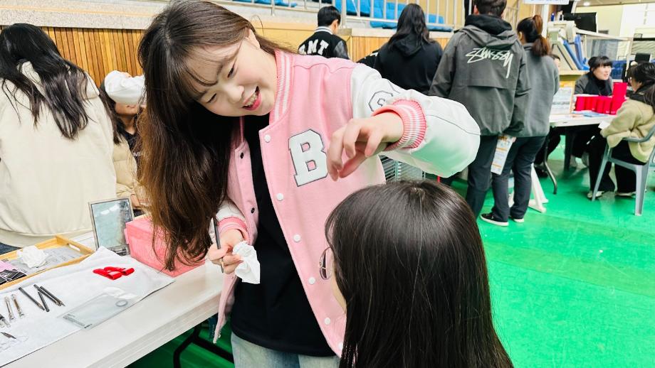 본문 시작 홈으로 커뮤니티 학과소개 교수소개 학과과정 커뮤니티 대학원 홈페이지가이드 포토갤러리 공지사항 채용정보 포토갤러리 Youtube 바로가기 Instargram 바로가기 Blog 바로가기 Facebook 바로가기 포토갤러리 페이스북 트위터 프린트 2024 청소년 빅콘서트, 행운을 부르는 예쁜 속눈썹 만들기! 뷰티케어학과 2167 2024-11-27 예쁜 눈썹 마음에 드시나요 ~!? 뷰티케어학과 학생들의 웃음과 행운을 나눠드리며 예쁜 눈썹까지 선물로 드립니다! 목록 이전다양한 탈색법을 비교해보았어요~ 다음 세명대학교 2025학년도 수시모집 충원합격자 발표/등록 안내