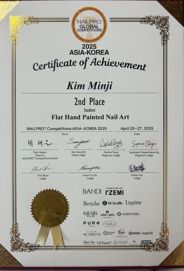 본문 시작 홈으로 커뮤니티 학과소개 교수소개 학과과정 커뮤니티 대학원 홈페이지가이드 포토갤러리 공지사항 채용정보 포토갤러리 Youtube 바로가기 Instargram 바로가기 Blog 바로가기 Facebook 바로가기 포토갤러리 페이스북 트위터 프린트 2025 아시아 네일프로글로벌컴피티션, 수상! 뷰티케어학과 647 2025-08-14 2025 아시아 네일프로글로발컴피티션 핸드페인팅 2등 뷰티케어학과 2학년 김민지 축하합니다~🎉👍😊 목록 다음 뷰티케어학과, 첫 졸업생 등장! 축하합니다! 다음 뷰티케어학과, NEW 네일실습실 공개!