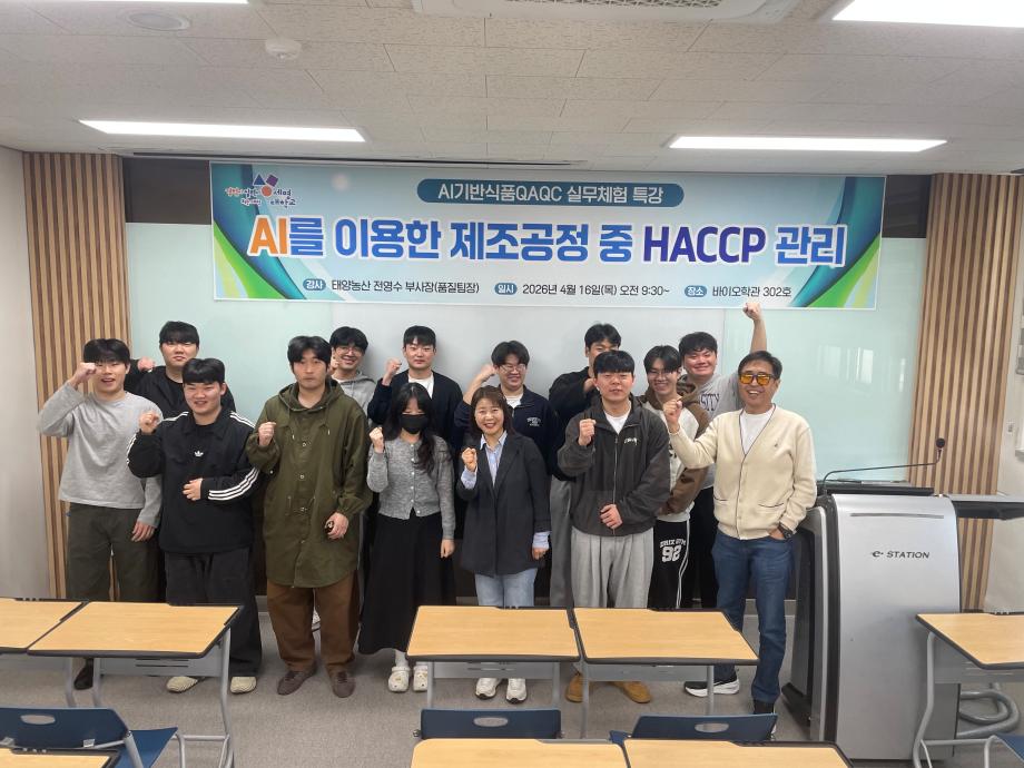 본문 시작 홈으로 커뮤니티 학부소개 진로·취업 교육과정 커뮤니티 대학원 입학상담 홈페이지가이드 갤러리 공지사항 갤러리 학생회 동문회 전공자료실 전공동아리 Youtube Instagram 갤러리 페이스북 트위터 프린트 2026학년도 1학기 실무체험 특강 (강사: 태양농산 전영수 품질팀장) 바이오식품영양학부 6 2026-04-17 목록 이전제5회 세명대학교 벚꽃축제 '벚꽃세봄' 및 제 11회 커뮤니티페스티벌 담당부서 : 바이오식품영양학부 담당자 : - 연락처 : 043-649-1430 최종수정일 : 2024-10-26 만족도조사 만족도 조사 이 페이지에서 제공하는 정보에 대하여 만족하시나요? 매우만족 만족 보통 불만족 매우불만족