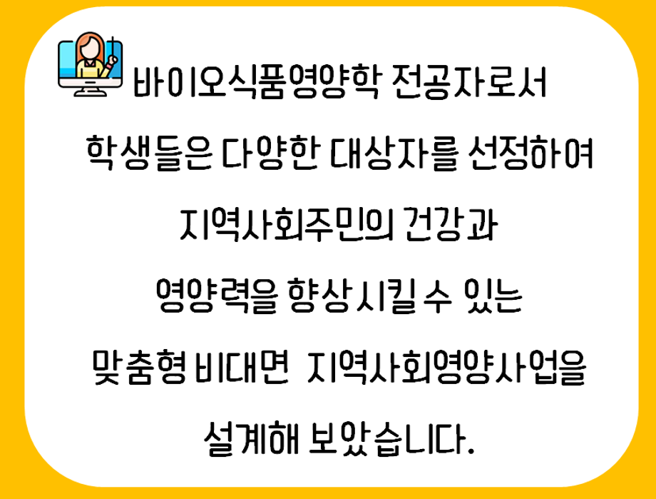 본문 시작 홈으로 커뮤니티 학부소개 진로·취업 교육과정 커뮤니티 대학원 입학상담 홈페이지가이드 갤러리 공지사항 갤러리 학생회 동문회 전공자료실 전공동아리 Youtube Instagram 갤러리 페이스북 트위터 프린트 2022 지역사회 영양학 종강 바이오식품영양학부 2121 2022-06-21 목록 이전2022 제6회 총장배 구기 종목대회 피구 우승 다음 2022 영양사 현장실습 종강 담당부서 : 바이오식품영양학부 담당자 : - 연락처 : 043-649-1430 최종수정일 : 2024-10-26 만족도조사 만족도 조사 이 페이지에서 제공하는 정보에 대하여 만족하시나요? 매우만족 만족 보통 불만족 매우불만족