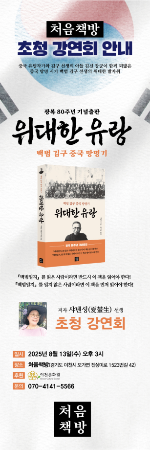 김기태 교수님 처음책방, 광복 80주년 기념 『위대한 유랑_백범 김구 중국 망명기』 출간 및 행사 안내