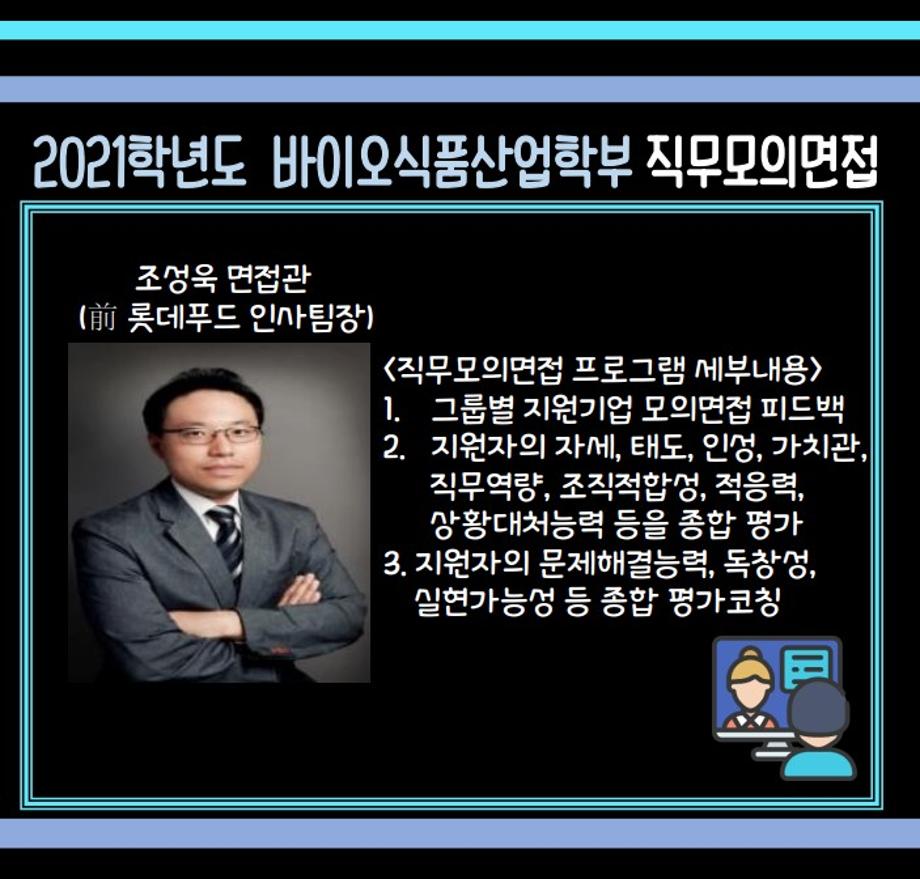 본문 시작 홈으로 학부소개 학부소개 진로·취업 교육과정 커뮤니티 대학원 입학상담 홈페이지가이드 갤러리 학부비전 학부장 인사말 학부연혁 학부장점 교수소개 교육시설 MOU 체결 갤러리 갤러리 페이스북 트위터 프린트 2021 직무모의면접 바이오식품영양학부 2380 2022-01-24 2021 직무모의면접 목록 이전2021 메디푸드개발 랜선조리경연대회 다음 2022 새내기 두드림 행사 만족도조사 만족도 조사 이 페이지에서 제공하는 정보에 대하여 만족하시나요? 매우만족 만족 보통 불만족 매우불만족