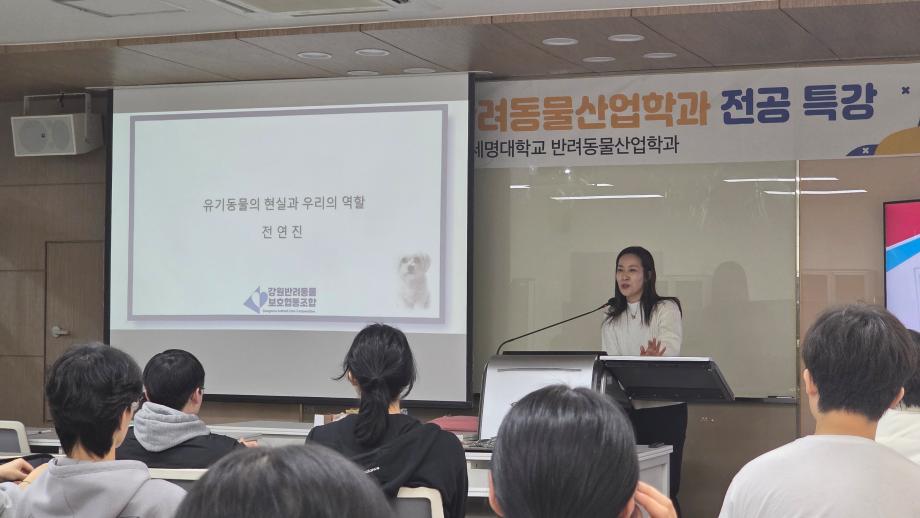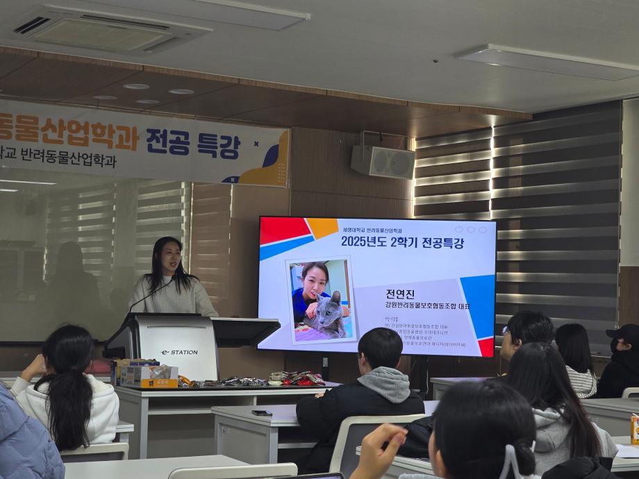 본문 시작 홈으로 커뮤니티 학과소개 교수소개 교육과정 커뮤니티 SNS 홈페이지가이드 학과행사 공지사항 포토갤러리 동아리 학과행사 전공관련정보 학과행사 페이스북 트위터 프린트 2025년도 반려동물산업학과 전공특강 반려동물산업학과 170 2025-12-26 2025년 12월 전연진 강원반려동물보호협호 협동조합 대표님께서 반려동물산업학과 전공특강을 진행해 주셨습니다. 목록 이전이지석 이주형 교수 국립중앙과학원 냥냥이 학술대회 특강 진행 다음 2026학년도 반려동물산업학과 꿈 설계학기 만족도조사 만족도 조사 이 페이지에서 제공하는 정보에 대하여 만족하시나요? 매우만족 만족 보통 불만족 매우불만족